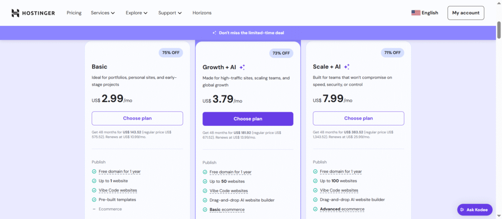 Step 3: Get Hosting with Hostinger